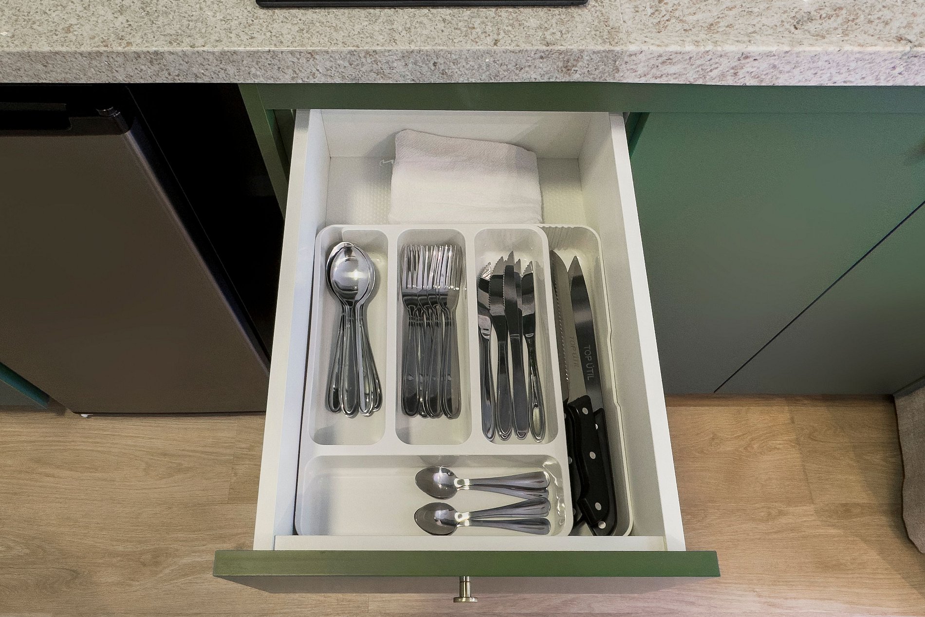 - Das gesamte Studio wird von einem Fachunternehmen gereinigt, inklusive Bettwäsche und häufig genutzter Gegenstände wie Fernbedienungen.