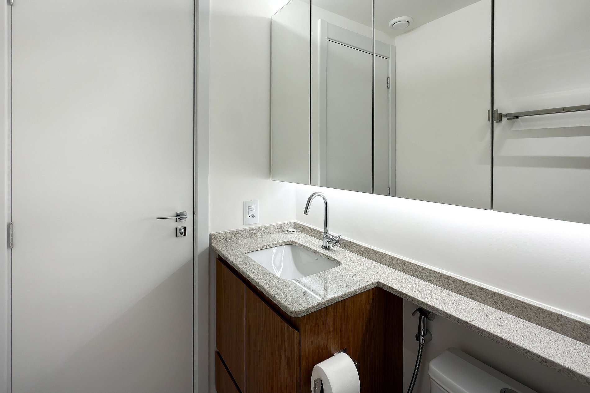 Das Cyrela Atmosfera zeichnet sich durch seine moderne und raffinierte Architektur aus, entworfen von renommierten Architekten, um ein elegantes und funktionales Erscheinungsbild zu bieten. Die Ästhetik wird durch klare Linien und hochwertige Oberflächen geprägt und verbindet Innen- und Außendesign perfekt.
