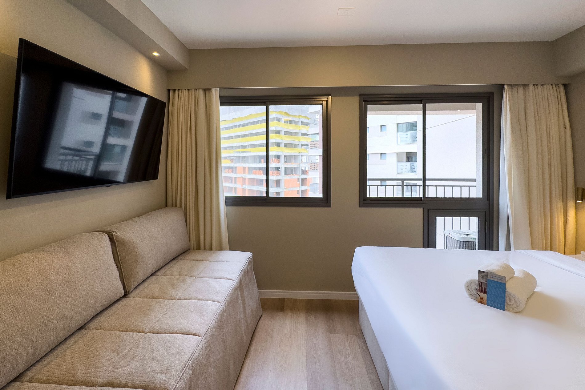 Enjoy 350 Mb fiber Wi-Fi, a 55” Smart TV, quiet A/C, and a full kitchen with filtered drinking water — everything to make you feel at home from the very first moment.
