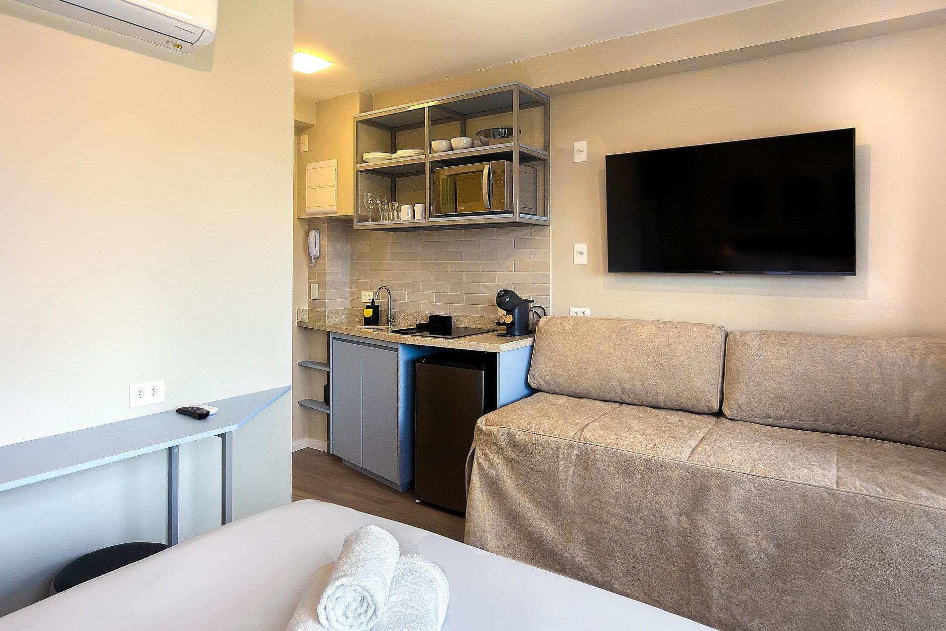 Enjoy 350 Mb fiber Wi-Fi, a 55” Smart TV, quiet A/C, and a full kitchen with filtered drinking water — everything to make you feel at home from the very first moment.