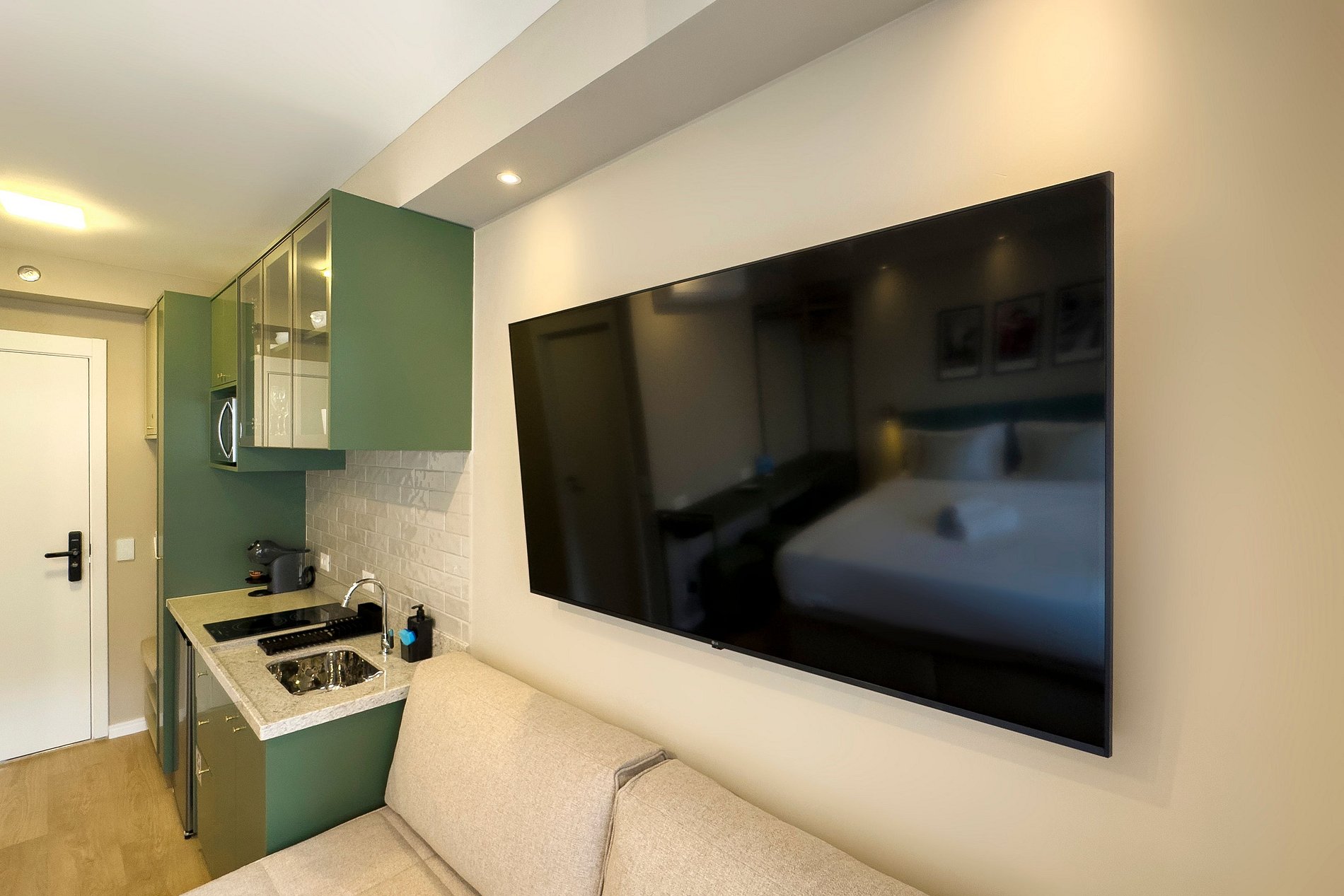 Disfruta de Wi-Fi de fibra óptica de 350 Mb, Smart TV 55”, aire acondicionado silencioso y cocina completa con agua filtrada — todo lo necesario para sentirte como en casa desde el primer momento.