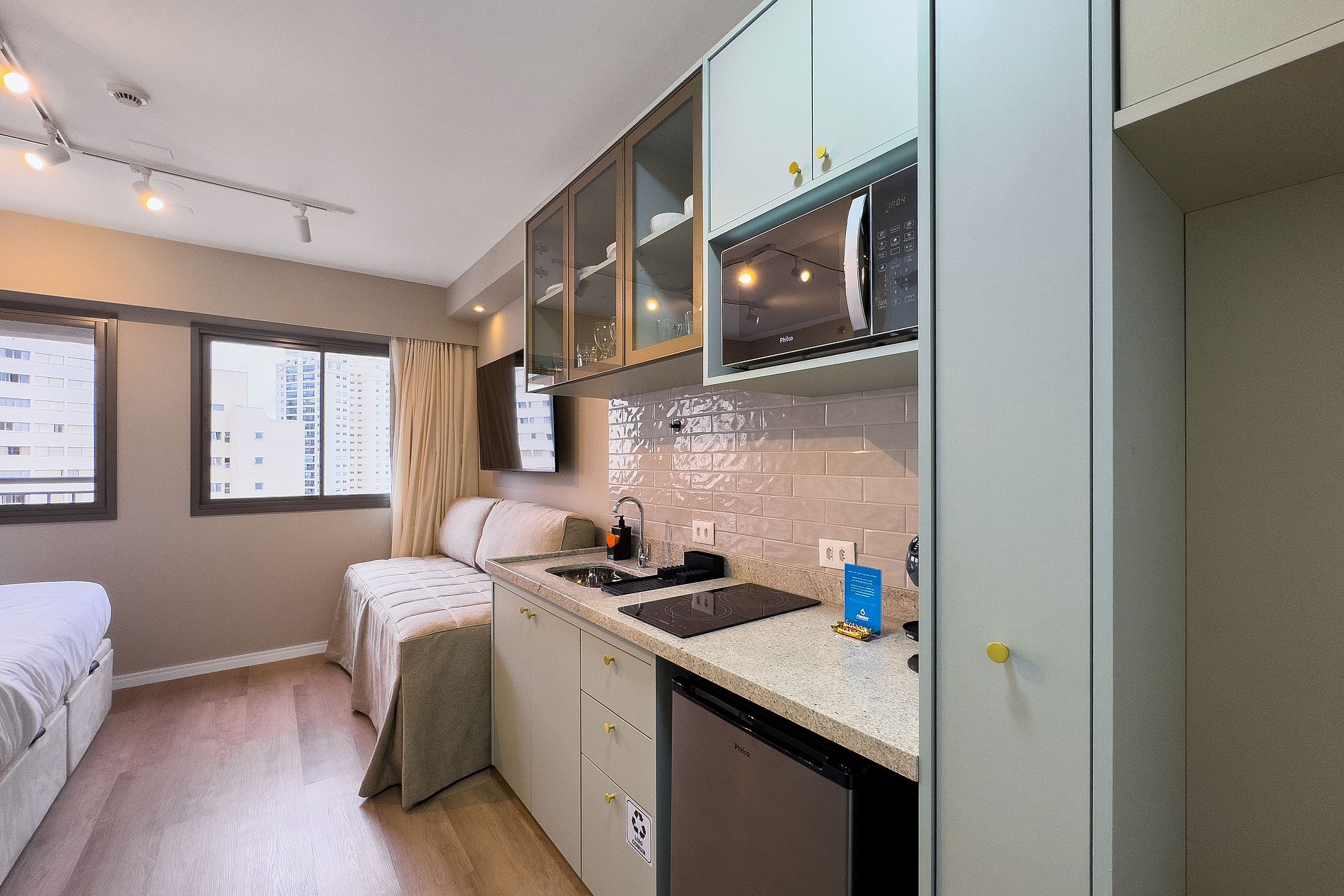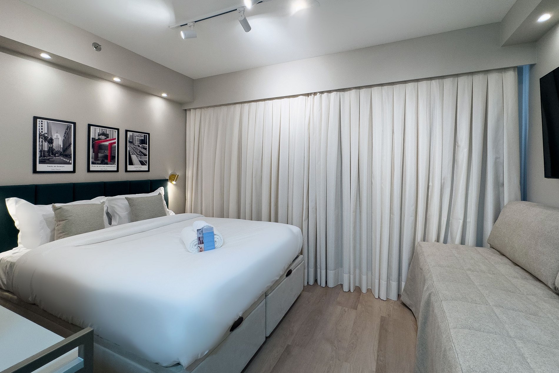 O nosso estúdio foi pensado para oferecer a mesma praticidade de um hotel com o conforto e acolhimento de um lar.