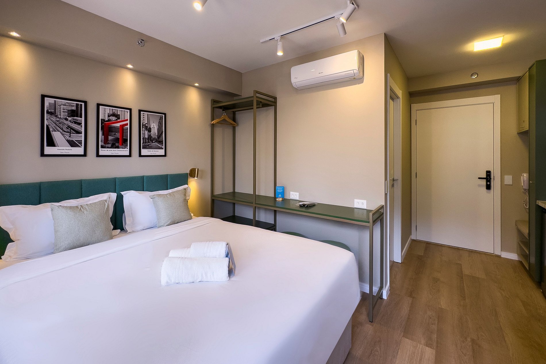O nosso estúdio foi pensado para oferecer a mesma praticidade de um hotel com o conforto e acolhimento de um lar.