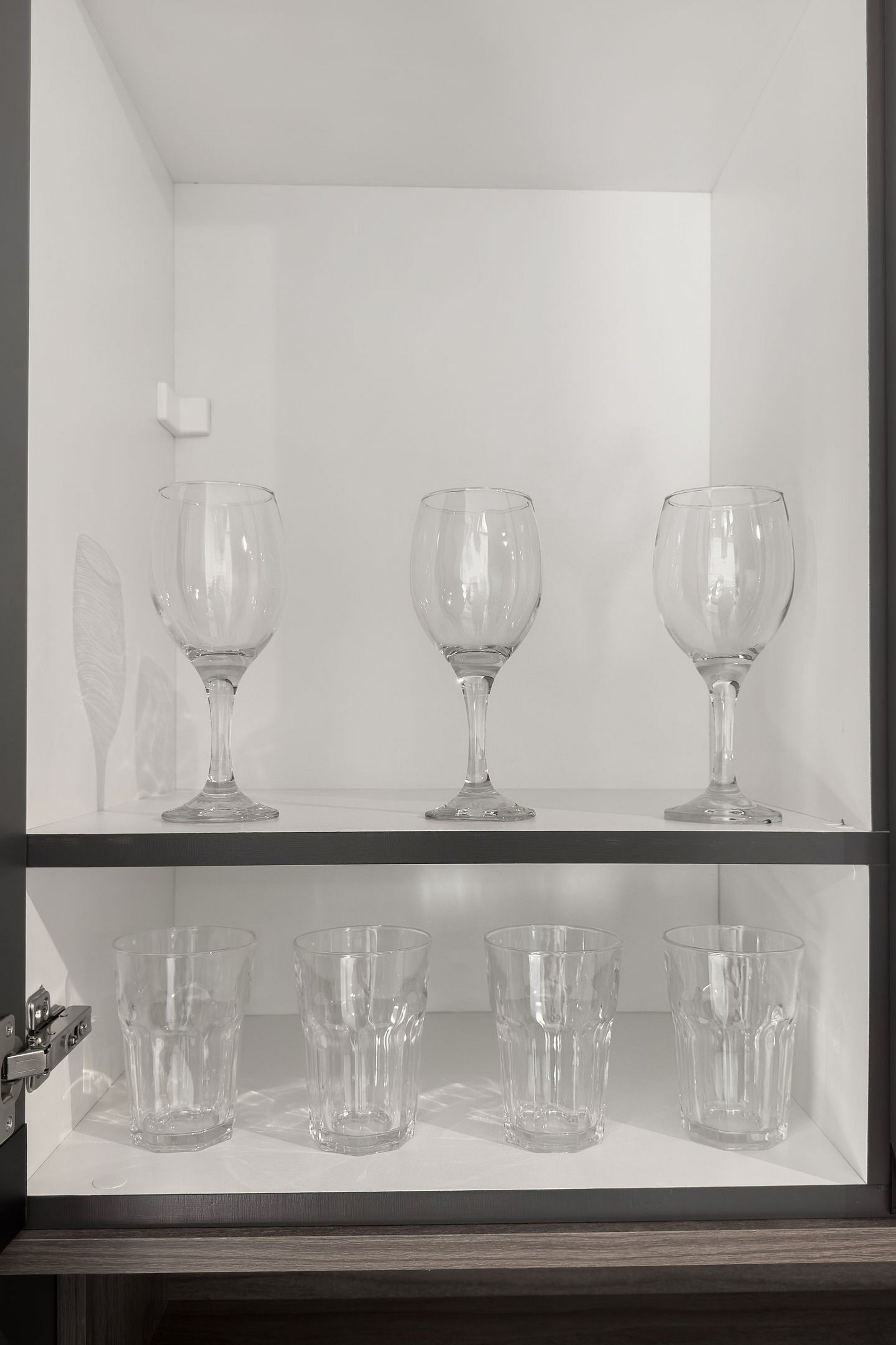 - Completamente equipada: cooktop de indução, micro-ondas grande, geladeira com freezer, cafeteira Dolce Gusto e utensílios essenciais (incluindo taças de vinho).